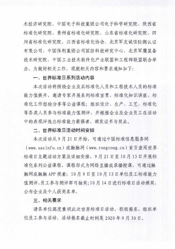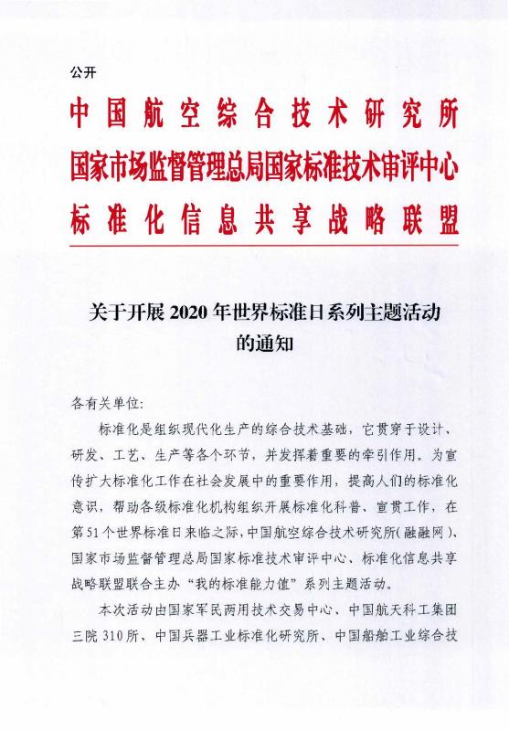 關(guān)于開(kāi)展2020年世界標(biāo)準(zhǔn)日系列主題活動(dòng)的通知