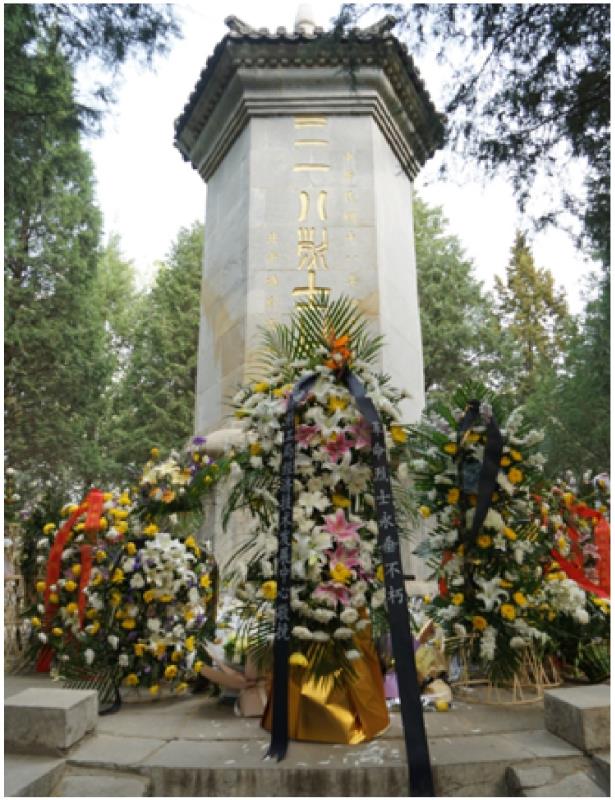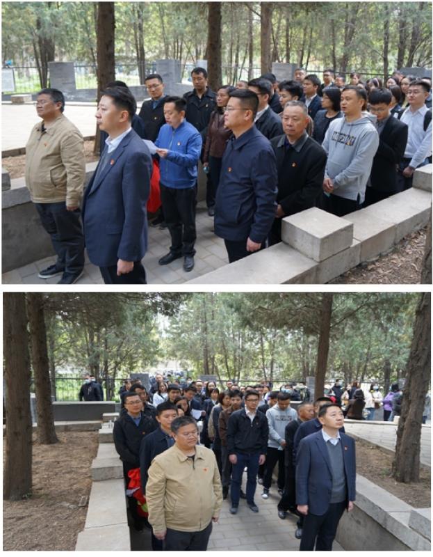 在莊嚴(yán)肅穆的“三一八烈士墓”前,面對(duì)著墓碑,沉重莊嚴(yán)的氣氛油然而生,中心趙理峰主任和李成偉書記向紀(jì)念碑敬獻(xiàn)了花籃,所有人懷著崇敬之情,鞠躬向烈士們表示沉痛的哀悼,銘記他們不怕?tīng)奚?、甘于奉獻(xiàn)的革命英雄主義精神。