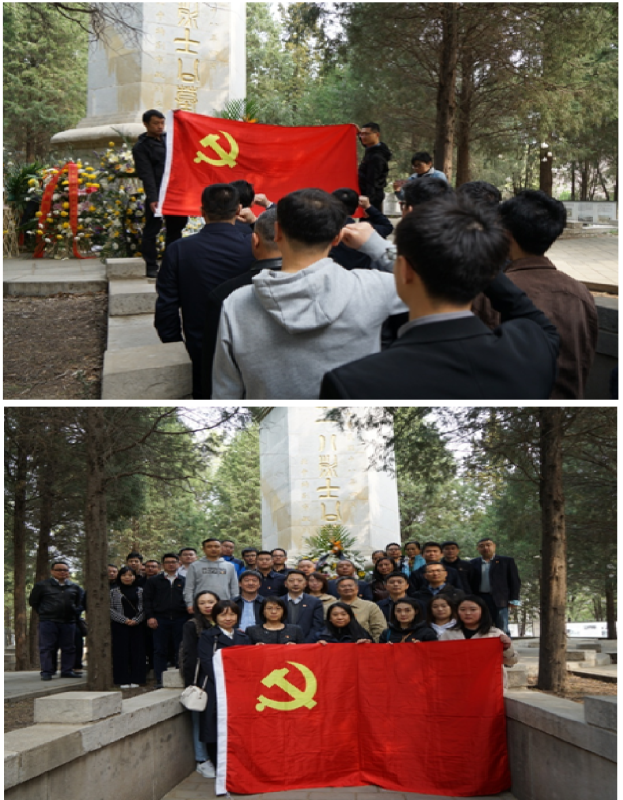 在中心綜合部部長(zhǎng)李時(shí)淵的帶領(lǐng)下,全體黨員高舉右手,在紀(jì)念碑前,重溫入黨誓詞,在鮮艷的黨旗下再次接受心靈的凈化和洗禮,鏗鏘恢宏的誓詞強(qiáng)烈震撼著在場(chǎng)的每一位黨員。最后,大家一起站在紀(jì)念碑下與黨旗合影。