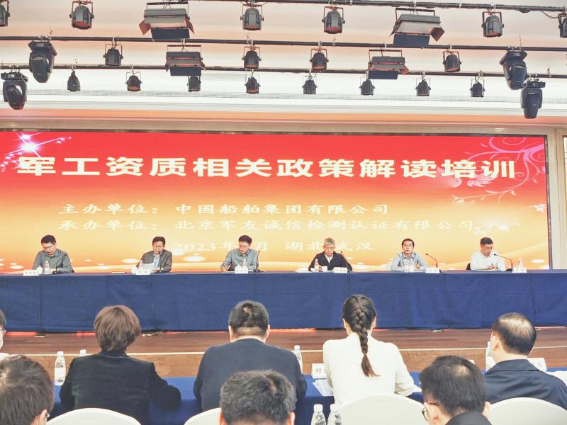 為加強對科研生產(chǎn)許可備案管理相關政策的理解和掌握,解讀軍品含稅采購相關政策,了解新時代質(zhì)量管理體系成熟度評價產(chǎn)生背景及評價準則,推動中國船舶集團有限公司(以下簡稱船舶集團)裝備科研、生產(chǎn)及配套單位管理水平和質(zhì)量管理能力共同提升。2023年3月6日,由船舶集團主辦,船舶質(zhì)量與可靠性中心、北京軍友誠信檢測認證有限公司(以下簡稱軍友誠信)承辦的“船舶集團2023年度軍工資質(zhì)相關政策解讀培訓”在武漢開幕。